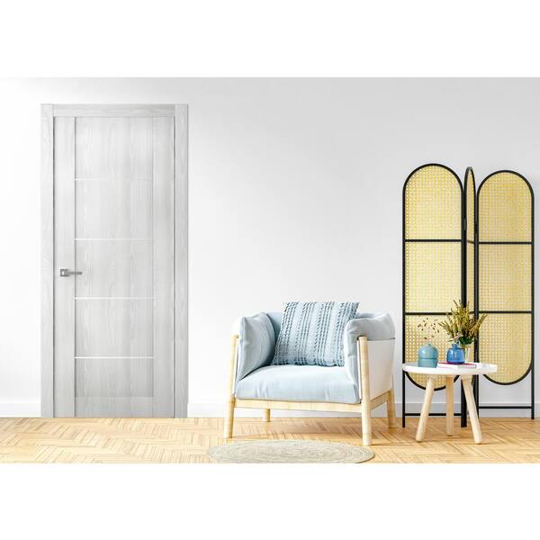 Vona 01 4H 36 in. W x 80 in. H x 1-3/4 in. D 1-Panel Solid Core Ribeira Ash Prefinished Wood Interior Door Slab
