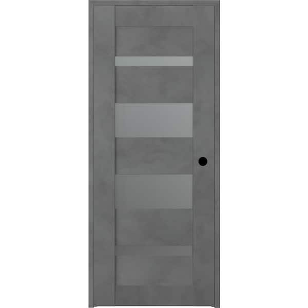 Vona 07-01 18 in. x 80 in. Left-Hand Frosted Glass Solid Core 4-Lite Dark Urban Wood Single Prehung Interior Door