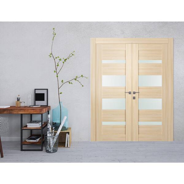 Vona 07-01 36 in. W. x 84 in. Right Active 4-Lite Frosted Glass Loire Ash Wood Composite Double Prehung Interior Door