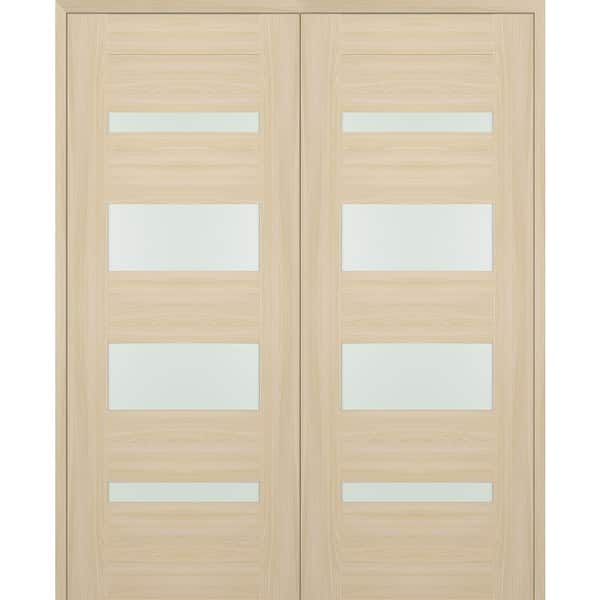 Vona 07-01 56 in. x 84 in. Both Active 4-Lite Frosted Glass Loire Ash Wood Composite Double Prehung Interior Door