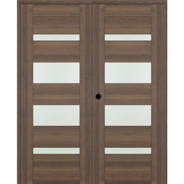 Vona 07-01 64 in. x 80 in. Right Active 4-Lite Frosted Glass Pecan Nutwood Wood Composite Double Prehung Interior Door