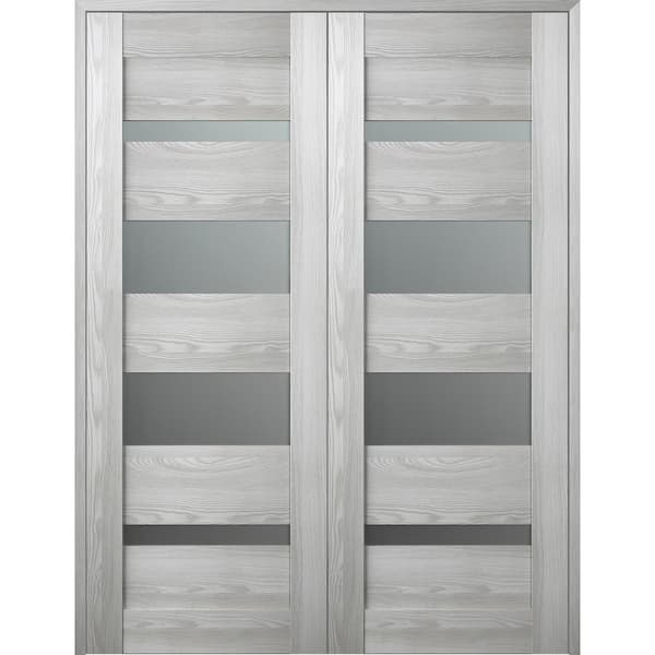 Vona 07-01 64 in. x 96 in. Both Active 5-Lite Frosted Glass Ribeira Ash Wood Composite Double Prehung Interior Door