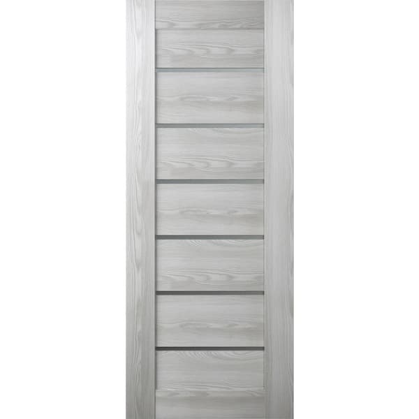 Vona 07-02 32 in. x 84 in. No Bore 7-lite Frosted Glass Ribeira Ash Wood Solid Composite Core Interior Door Slab