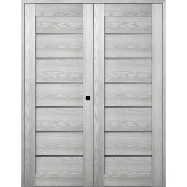 Vona 07-02 48 in. x 84 in. Left Hand Active 7-Lite Frosted Glass Ribeira Ash Wood Composite Double Prehung French Door