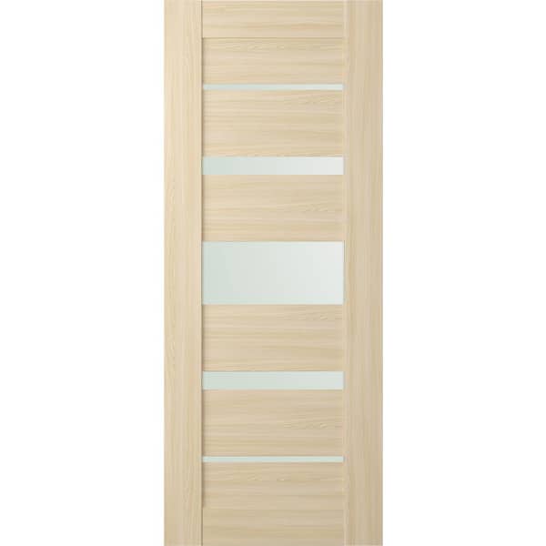 Vona 07-03 30 in. x 95.25 in. No Bore 7-Lite Frosted Glass Loire Ash Wood Composite Interior Door Slab