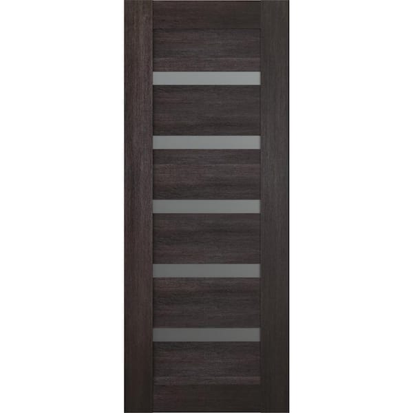 Vona 07-04 32 in. x 80 in. No Bore Solid Core 5-Lite Frosted Glass Veralinga Oak Wood Composite Interior Door Slab