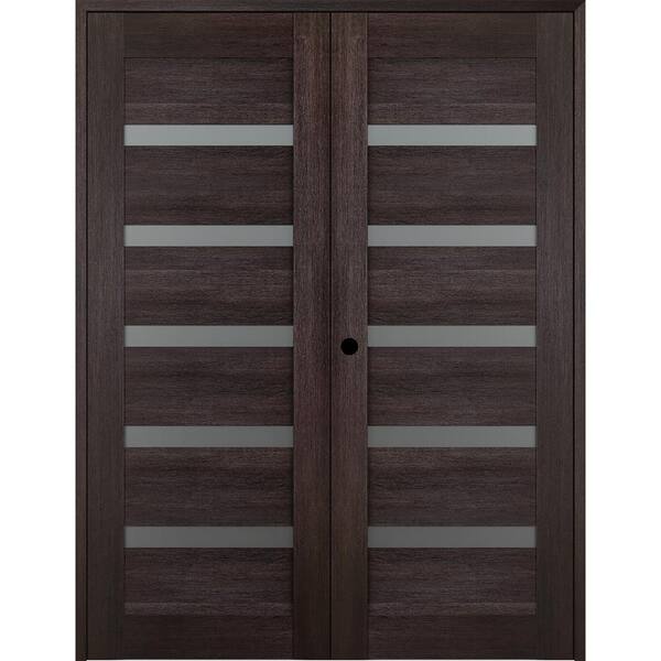 Vona 07-04 36 in. x 84 in. Right Hand Active 6-Lite Frosted Glass Oak Wood Composite Double Prehung French Door