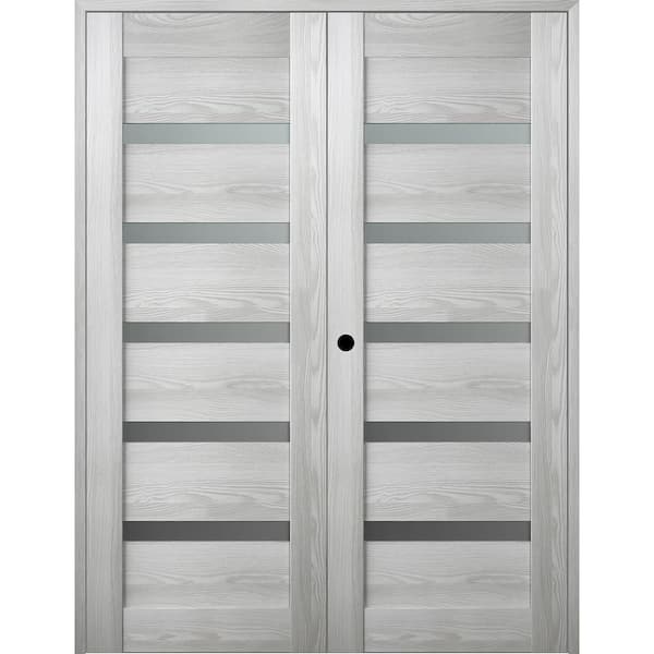 Vona 07-04 56 in. x 96 in. Right Hand Active 7-Lite Frosted Glass Ribeira Ash Wood Composite Double Prehung French Door