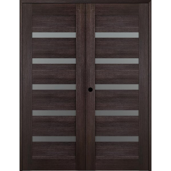Vona 07-04 64 in. x 96 in. Right Hand 7-Lite Frosted Glass Veralinga Oak Wood Composite Double Prehung French Door