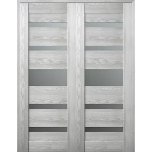 Vona 07-05 60 in. x 80 in. Both Active 5-Lite Frosted Glass Ribeira Ash Wood Composite Double Prehung French Door