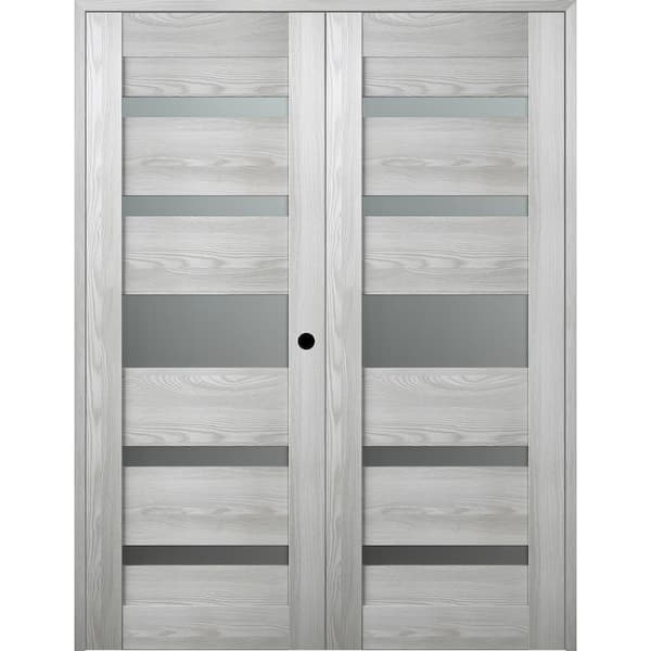 Vona 07-05 60 in. x 96 in. Left Hand Active 5-Lite Frosted Glass Ribeira Ash Wood Composite Double Prehung French Door