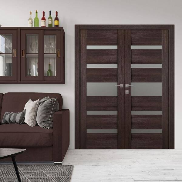 Vona 07-05 60"x 80" Right Hand Active 5-Lite Frosted Glass Veralinga Oak Wood Composite Double Prehung French Door