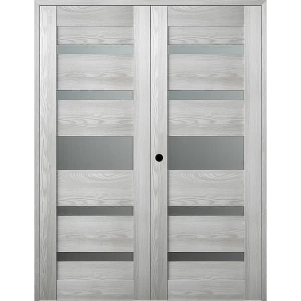 Vona 07-05 64 in. x 96 in. Right Hand Active 5-Lite Frosted Glass Ribeira Ash Wood Composite Double Prehung French Door