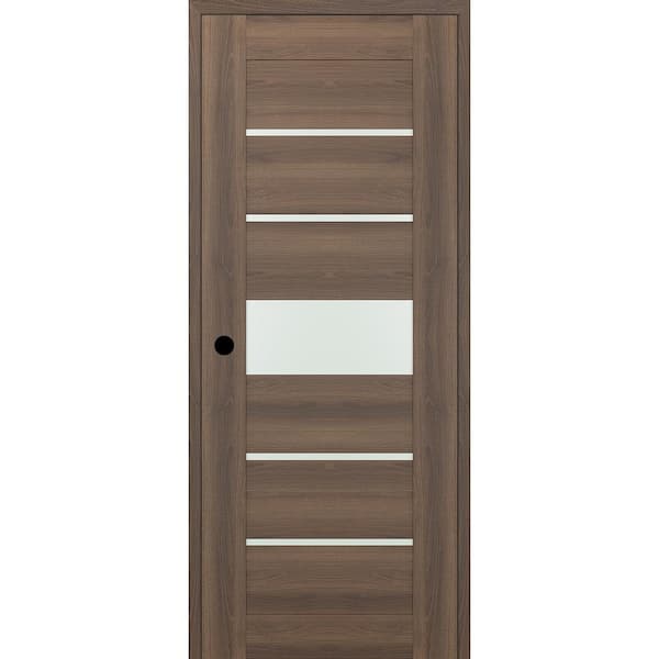 Vona 07-06 DIY-Friendly 36in.x84in. Right-Hand Frosted Glass Pecan Nutwood Wood Composite Single Prehung Interior Door
