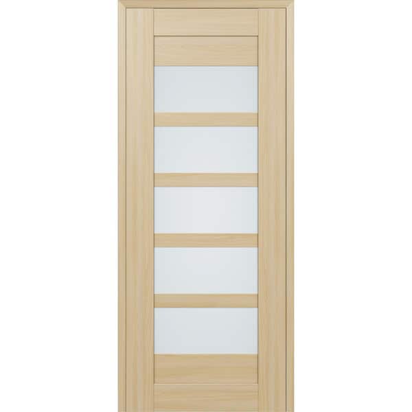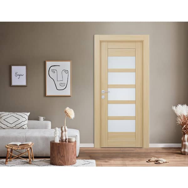 Vona 07-07 18 in. x 80 in. No Bore 5-Lite Frosted Glass Loire Ash Wood Composite Interior Door Slab