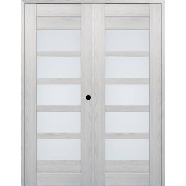Vona 07-07 56 in. x 84 in. Left Active 5-Lite Frosted Glass Ribeira Ash Wood Composite Double Prehung Interior Door