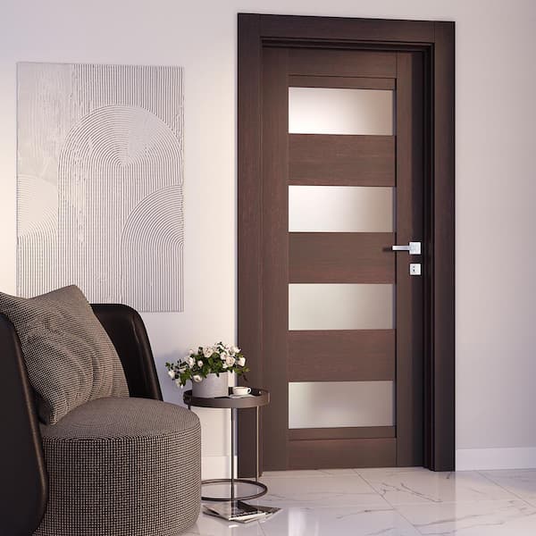 Vona 07-08 24 in. x 80 in. No Bore 4-Lite Frosted Glass Veralinga Oak Composite Wood Interior Door Slab