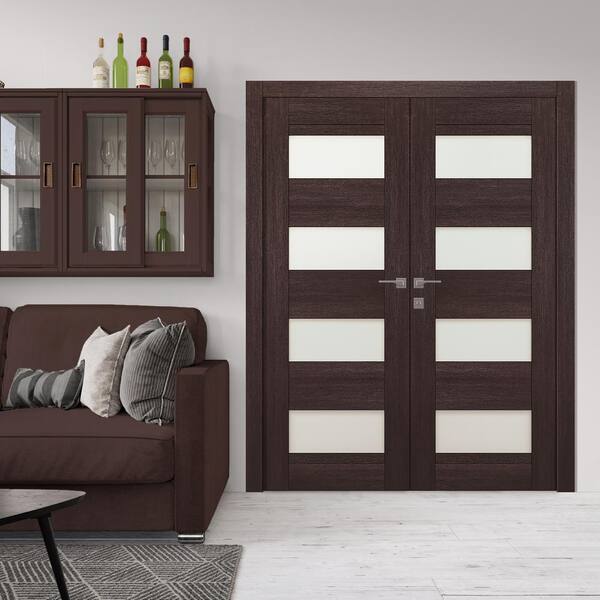 Vona 07-08 64 in. x 80 in. Right Active 4-Lite Frosted Glass Veralinga Oak Wood Composite Double Prehung Interior Door