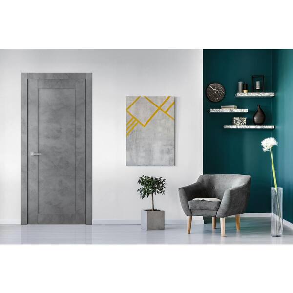Vona 07 30 in. W x 80 in. H x 1-3/4 in. D 1-Panel Solid Core Dark Urban Wood Interior Door Slab