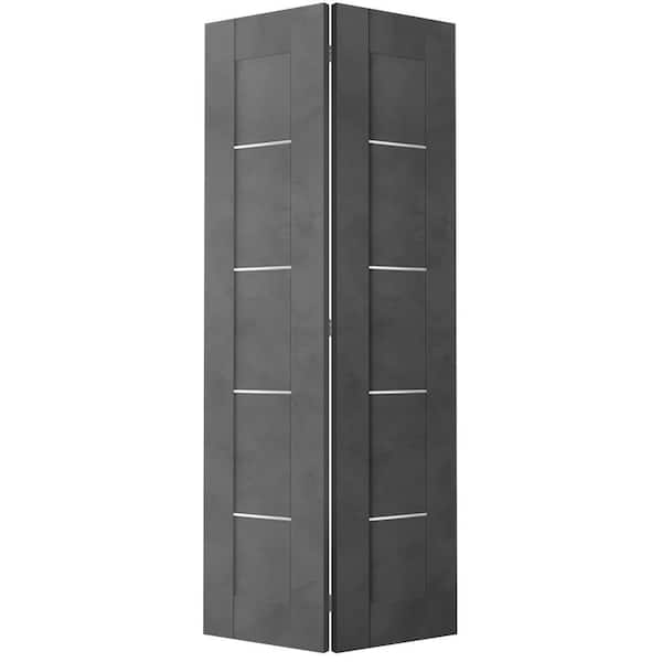 Vona 07 4H 36 in. x 79.375 in. Solid Core Composite Dark Urban Finished Wood Bifold Door with Hardware