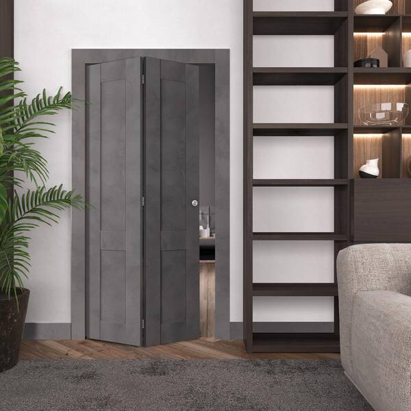 Vona 07 R 48 in. x 79.375 in. Solid Core Composite Dark Urban Finished Wood Bifold Door with Hardware