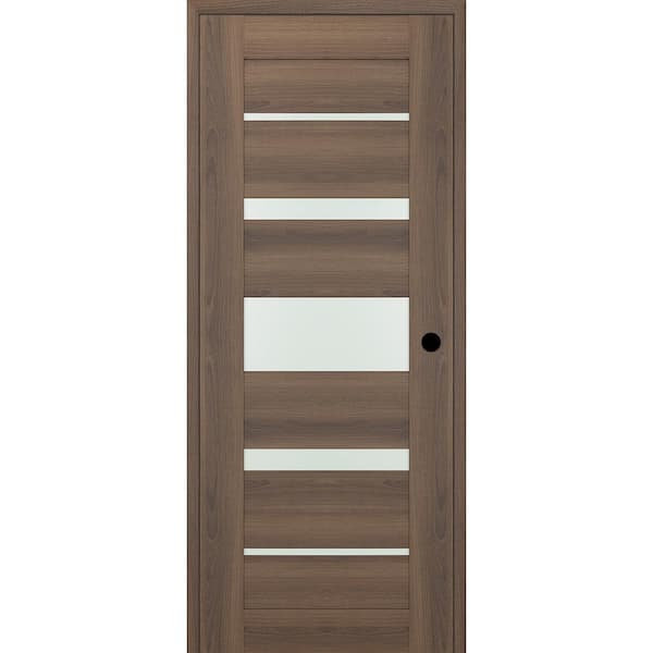 Vona 0703 18 in. x 84 in. Left-Hand Frosted Glass Pecan Nutwood Wood Composite Single Prehung Interior Door