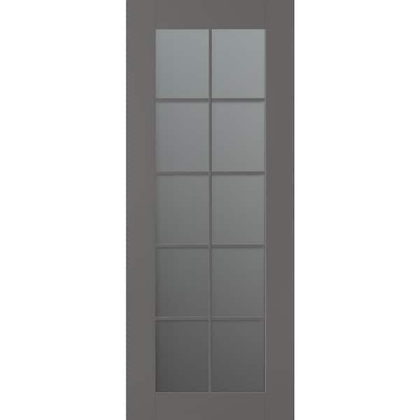 Vona 10-Lite 24 in. x 80 in. No Bore Solid Core Frosted Glass and Gray Matte Wood Composite Interior Door Slab