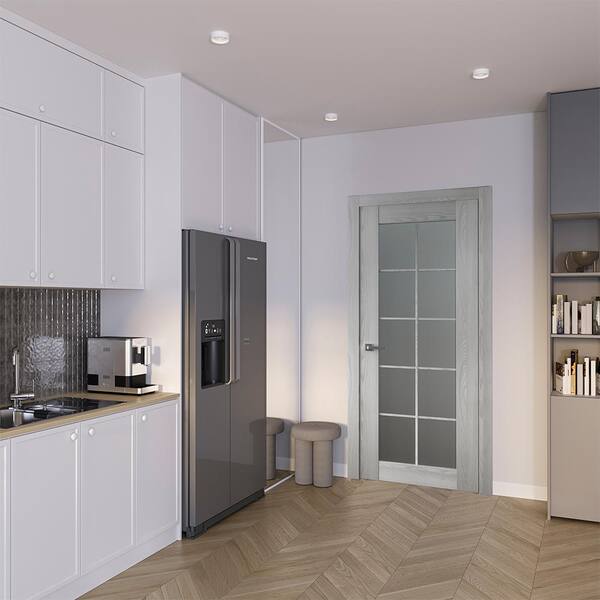Vona 10-Lite 24 in. x 84 in. No Bore Solid Core Frosted Glass and Ribeira Ash Wood Composite Interior Door Slab