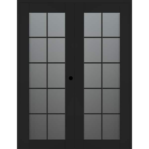 Vona 10 Lite 56 in. x 84 in. Left Active 10-Lite Frosted Glass Black Matte Wood Composite Double Prehung Interior Door