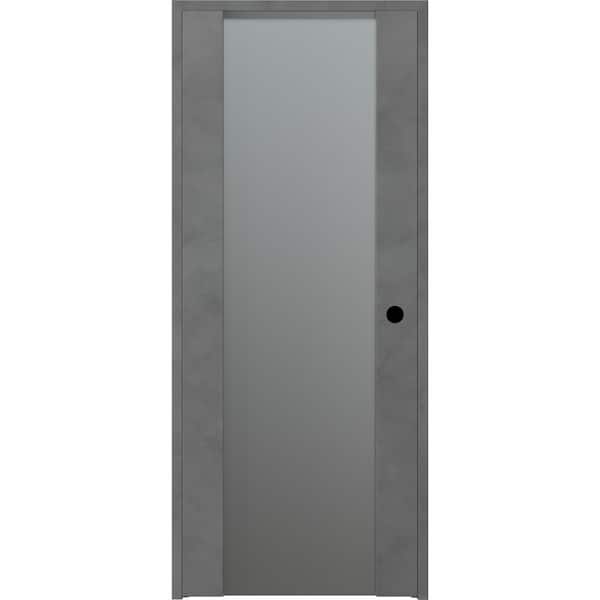 Vona 202 18 in. x 80 in. Dark Urban Left-Hand Solid Core Wood 1-Lite Frosted Glass Single Prehung Interior Door
