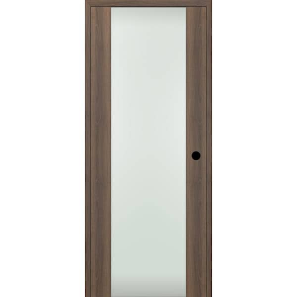 Vona 202 18 in. x 80 in. Right-Hand Full Lite Frosted Glass Solid Core Pecan Nutwood Wood Single Prehung Interior Door