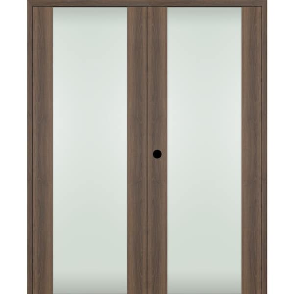 Vona 202 48"x80" Right Hand Active Full Lite Frosted Glass Pecan Nutwood Composite Wood Double Prehung French Door