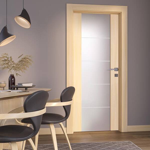 Vona 202 4H 28 in. x 80 in. No Bore Full Lite Frosted Glass Loire Ash Wood Composite Interior Door Slab