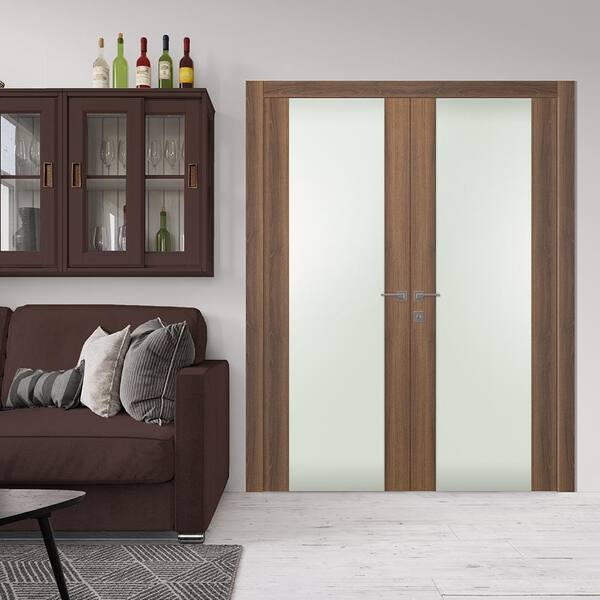 Vona 202 60"x96" Right Hand Active Full Lite Frosted Glass Pecan Nutwood Composite Wood Double Prehung French Door