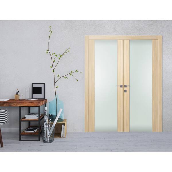 Vona 202 64"x84" Left Hand Active Full Lite Frosted Glass Loire Ash Composite Wood Double Prehung French Door