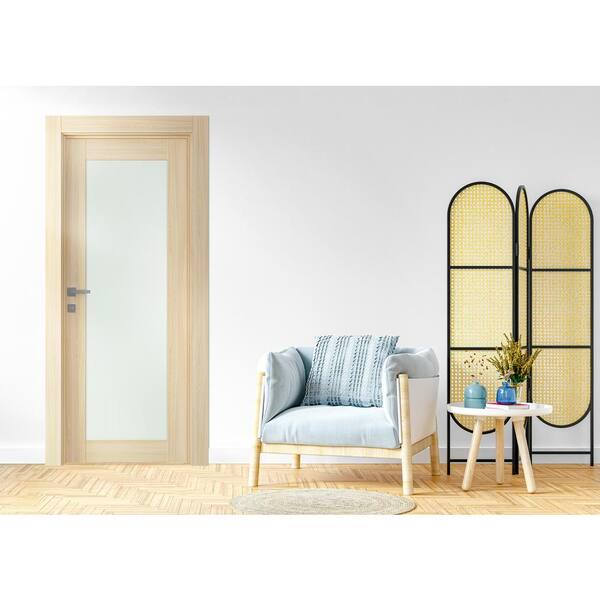 Vona 207 18 in. x 84 in. No Bore Full Lite Frosted Glass Loire Ash Finished Composite Wood Interior Door Slab