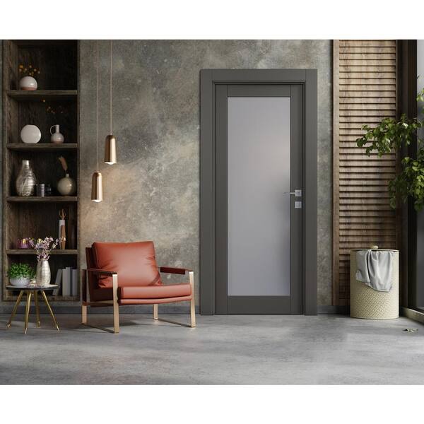 Vona 207 24 in. x 84 in. No Bore Solid Core Gray Matte Wood and Full Lite Composite Interior Door Slab