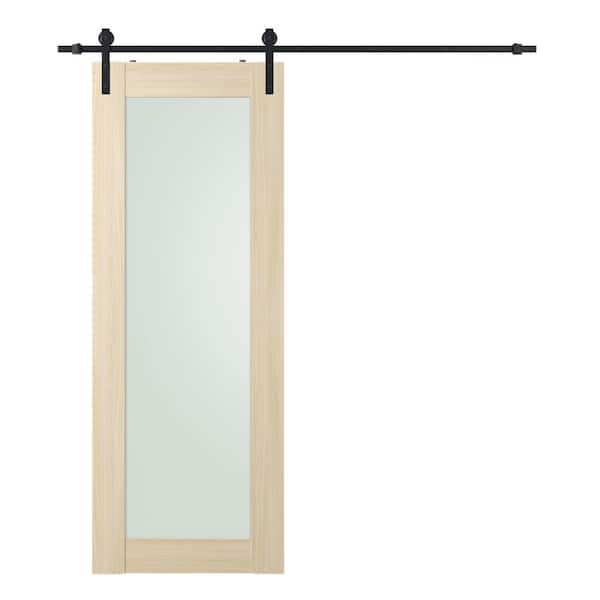 Vona 207 24"x 96" Full Lite Frosted Glass Loire Ash Finished Composite Core Wood Sliding Barn Door with Hardware Kit