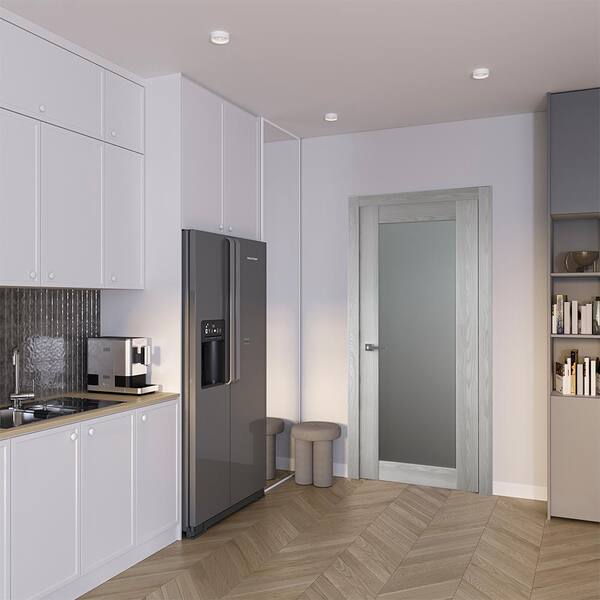 Vona 207 30 in. x 96 in. No Bore Solid Core Ribeira Ash Wood and Full Lite Composite Interior Door Slab