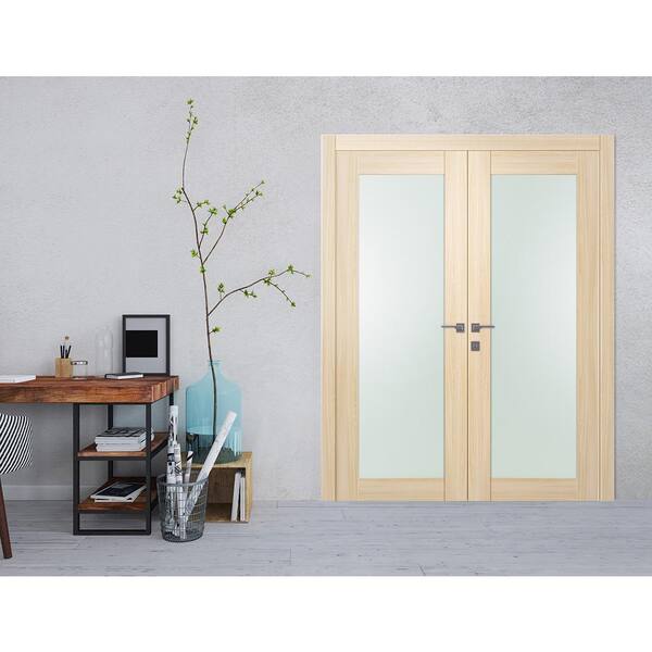 Vona 207 36 in. x 96 in. Left Hand Active Full Lite Frosted Glass Loire Ash Wood Composite Double Prehung French Door