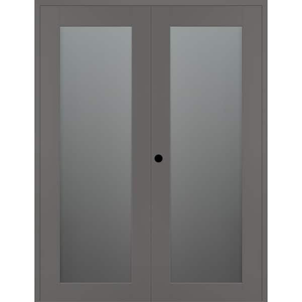 Vona 207 60 in. x 84 in. Right Active Full Lite Frosted Glass Gray Matte Wood Composite Double Prehung Interior Door