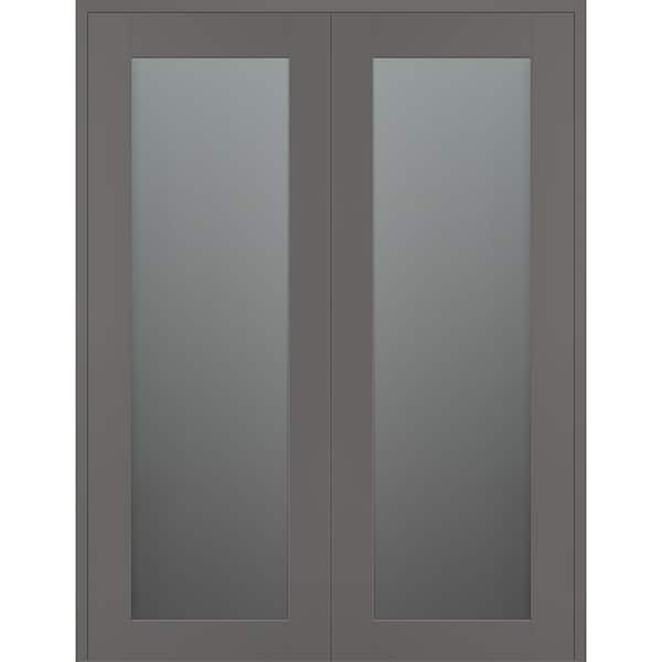 Vona 207 60 in. x 96 in. Both Active Full Lite Frosted Glass Gray Matte Wood Composite Double Prehung Interior Door