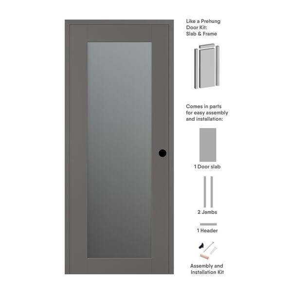 Vona 207 DIY-FRIENDLY 24 in. x 84 in. Left-Hand Frosted Glass Gray Matte Wood Composite Single Prehung Interior Door