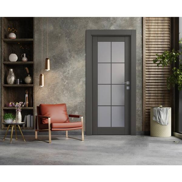 Vona 24 in. W. x 96 in. 8-Lite No Bore Solid Core Frosted Glass Gray Matte Composite Interior Door Slab
