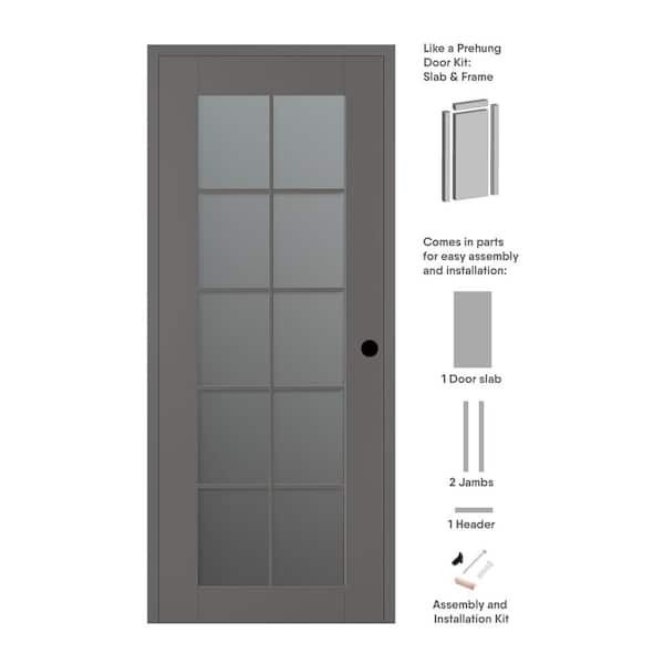 Vona 24 in. x 84 in. Left-Hand 10-Lite Frosted Glass Gray Matte Wood Composite DIY-Friendly Single Prehung Interior Door