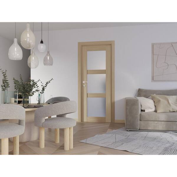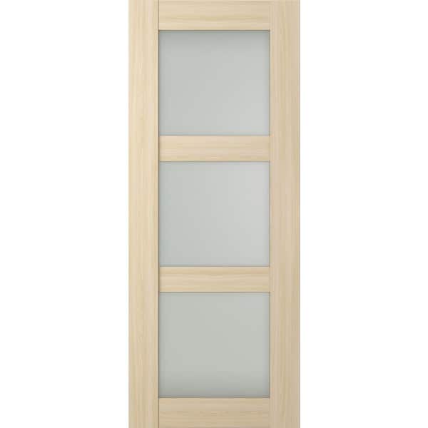 Vona 3-Lite 24 in. x 95.25 in. No Bore 3-Lite Frosted Glass Loire Ash Composite Wood Interior Door Slab