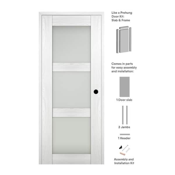 Vona 3 Lite 36 in. x 96 in. Left-Hand Frosted Glass Ribeira Ash Composite Solid Core Wood Single Prehung Interior Door