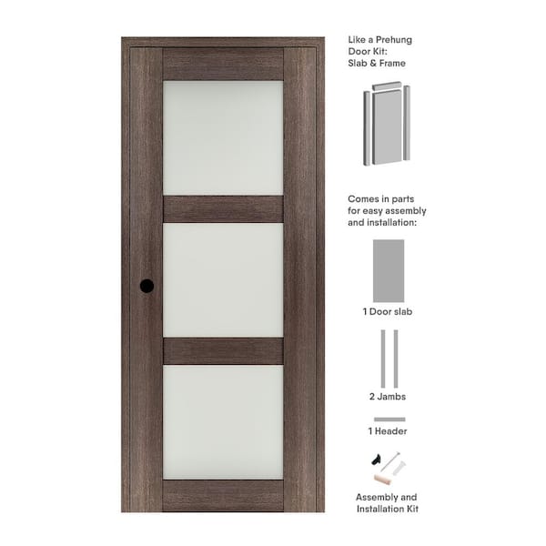 Vona 3 Lite 36 in.x84 in. Right-hand Frosted Glass Veralinga Oak Composite Solid Core Wood Single Prehung Interior Door