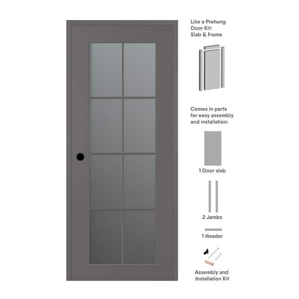 Vona 32 in. x 80 in. Right-Hand 8-Lite Frosted Glass Gray Matte Composite DIY-Friendly Single Prehung Interior Door