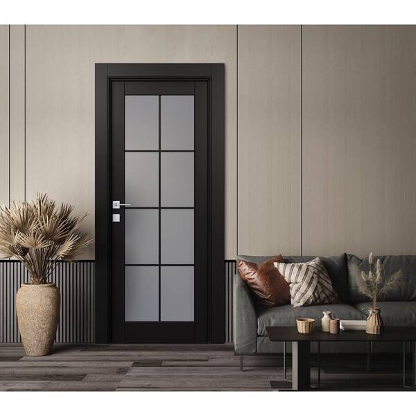 Vona 32 in. x 96 in. 8-Lite No Bore Solid Core Frosted Glass Black Matte Wood Composite Interior Door Slab